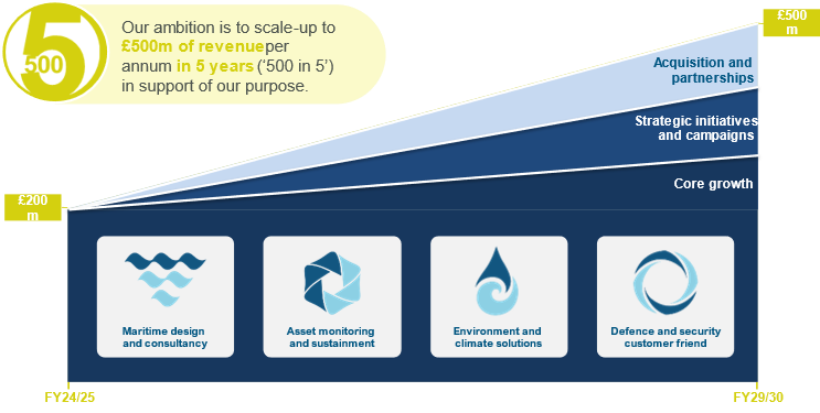 Our business ambition is straightforward: within five years, we aim to generate annual revenues of £500M across three global regions of roughly equal size. This growth will be achieved through both organic and inorganic means, ensuring that we meet our customers’ demands and exceed their expectations.