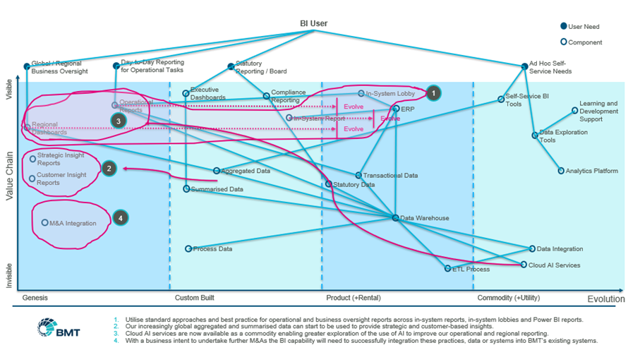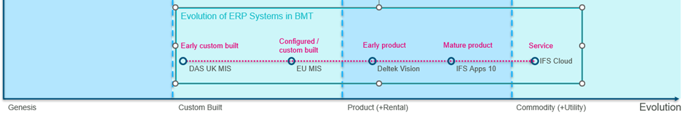 BMT’s internal landscape continues to simplify and cohere around a smaller set of Enterprise Applications. As we remove novel and custom-built applications, we continue to take advantage of product and commodity applications. The increased use of mature products and services is enabling BMT to cohere our Business Processes to increasingly ‘best practice’ approaches.