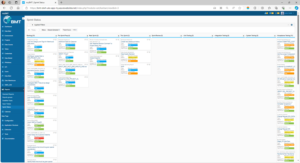 With tickets myBMT SHALL maintain a record of actions performed on DataMarts