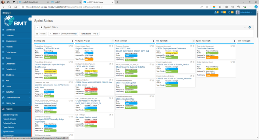 Stakeholder feedback and iteration log | Gather feedback from stakeholders and users to iterate on the MVP and refine its features and functionality. | Data Specialist | myBMT (Tickets) Bug & Change Request |