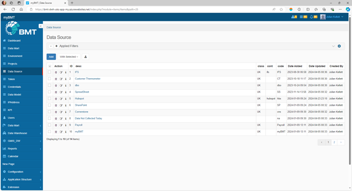 Data Source Inventory | Identify relevant data sources within the organisation, including databases, applications, and external sources. | Data Architect/Engineer (with Data Specialist) | myBMT(Data Objects) |