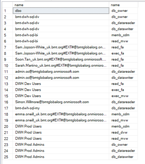 Data User SHALL be member of the Common Data Model and read access to mvw and dvw