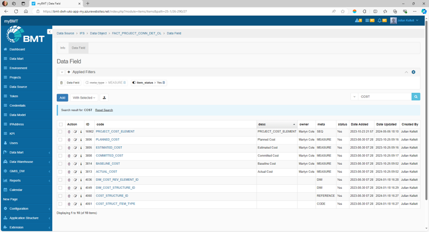 At the core of BMT’s data warehouse architecture is the Common Data Model (CDM), which serves as the foundation for representing the organisation’s core business processes and common form designs. The CDM supports dimensional modelling, where data is structured into measurement facts and descriptive dimensions, enabling efficient querying and analysis. Dimensional models, instantiated as star schemas or cubes in relational databases, provide a structured framework for organising and accessing data, facilitating reporting and analytics processes.